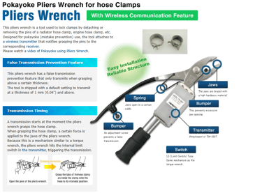 HERUTU’s Pokayoke-compatible pliers wrenches integrate wireless transmitters that send confirmation signals when the correct grasping or release operation is performed. Certain models include false-transmission prevention functions, ensuring signals are only sent during proper operation.